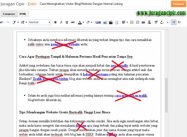 Do not have too many internal link link on each post. Try to only 1 or 2 links course, and a maximum of 3 links course for each post. And we also have to know which posts are needed are linked and which posts that do are linked. The aim is to avoid the action of ejecting among our own blog posts in Google SERP.