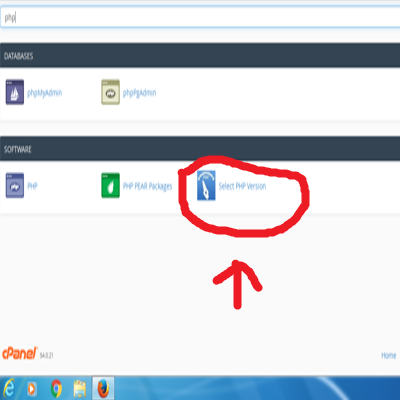 3.Search (search) with the keyword "php" in your dpanboard cpanel column and select select PHP version, like this picture: