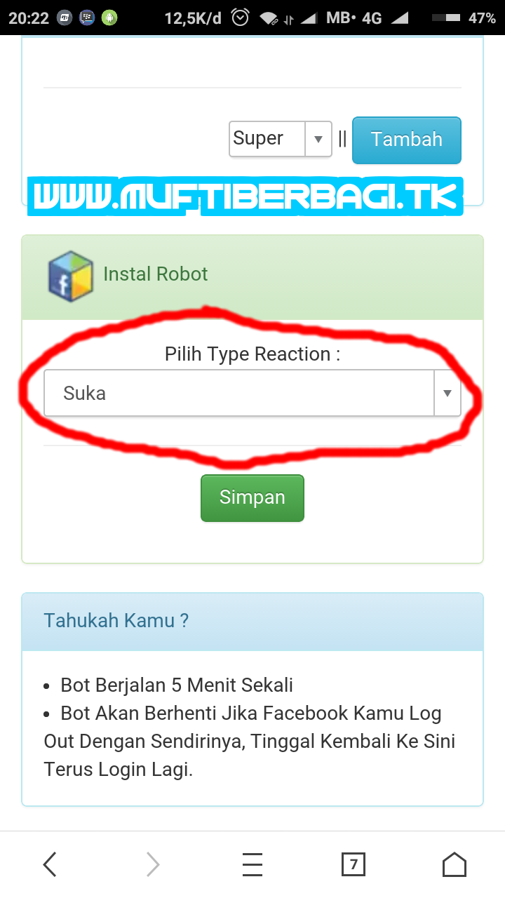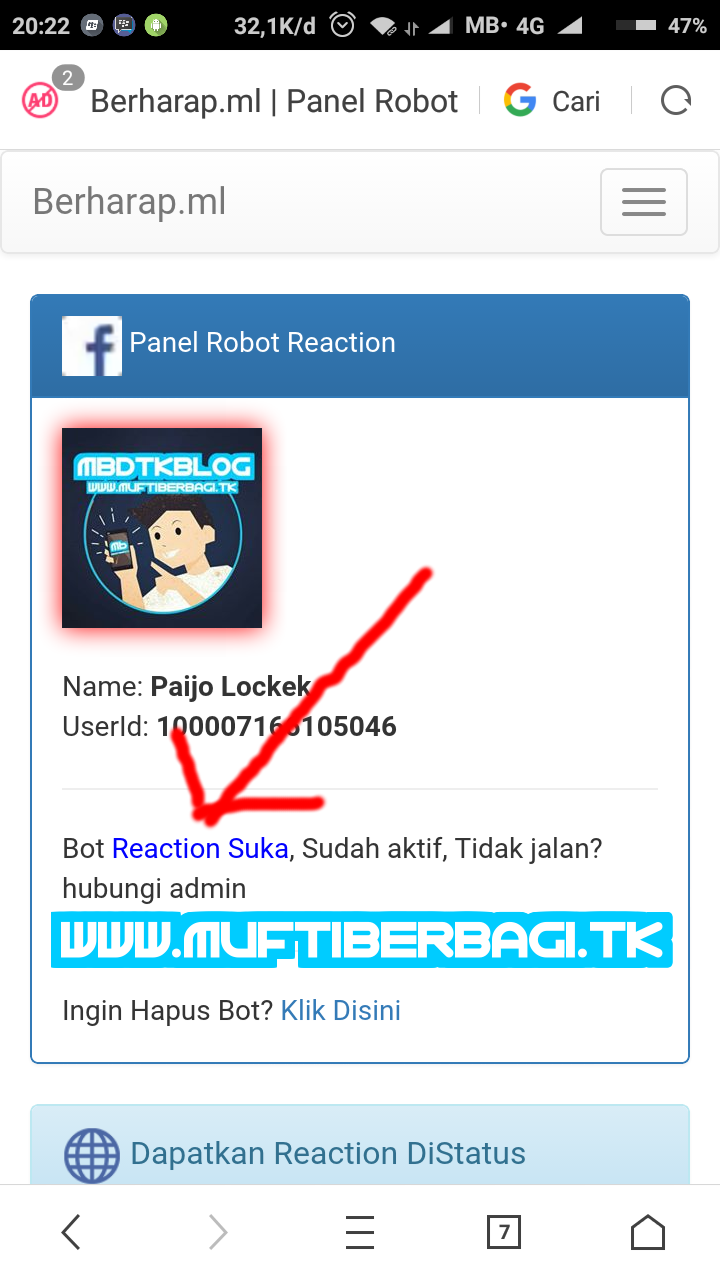 Tutorial to enable Bot Auto Reaction / Bot Like Facebook Home complete with Image (berharap.ml)