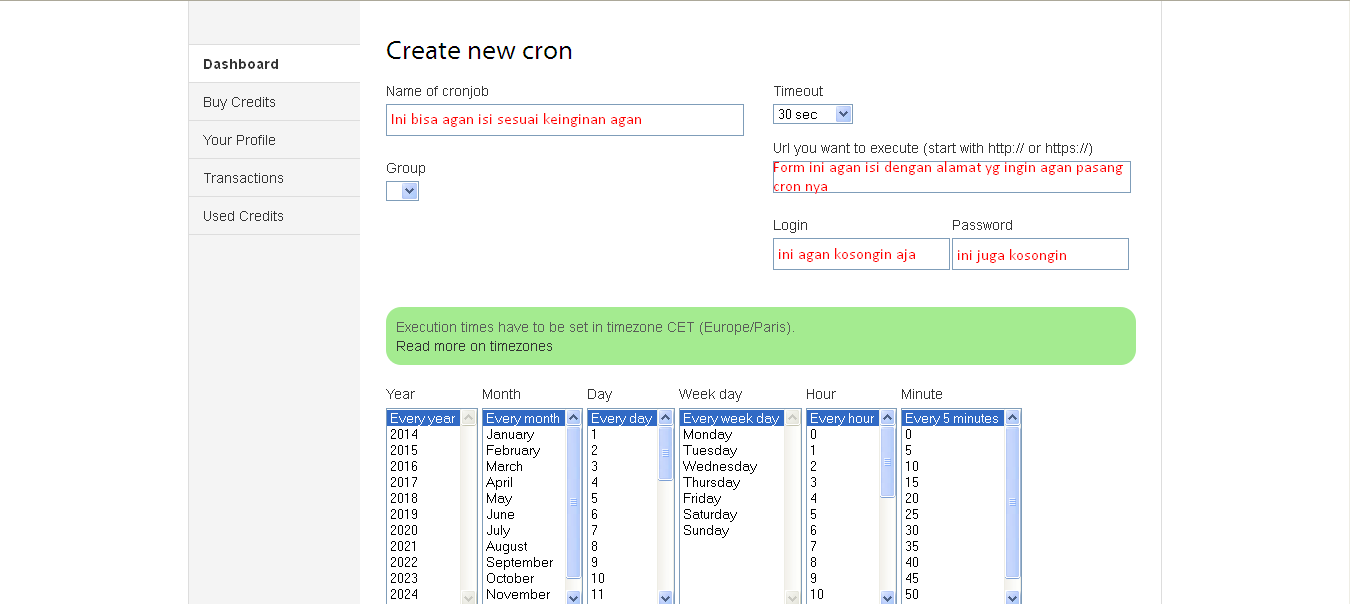 kali ini saya akan membahas cara memasang cron job di webcron.org.
